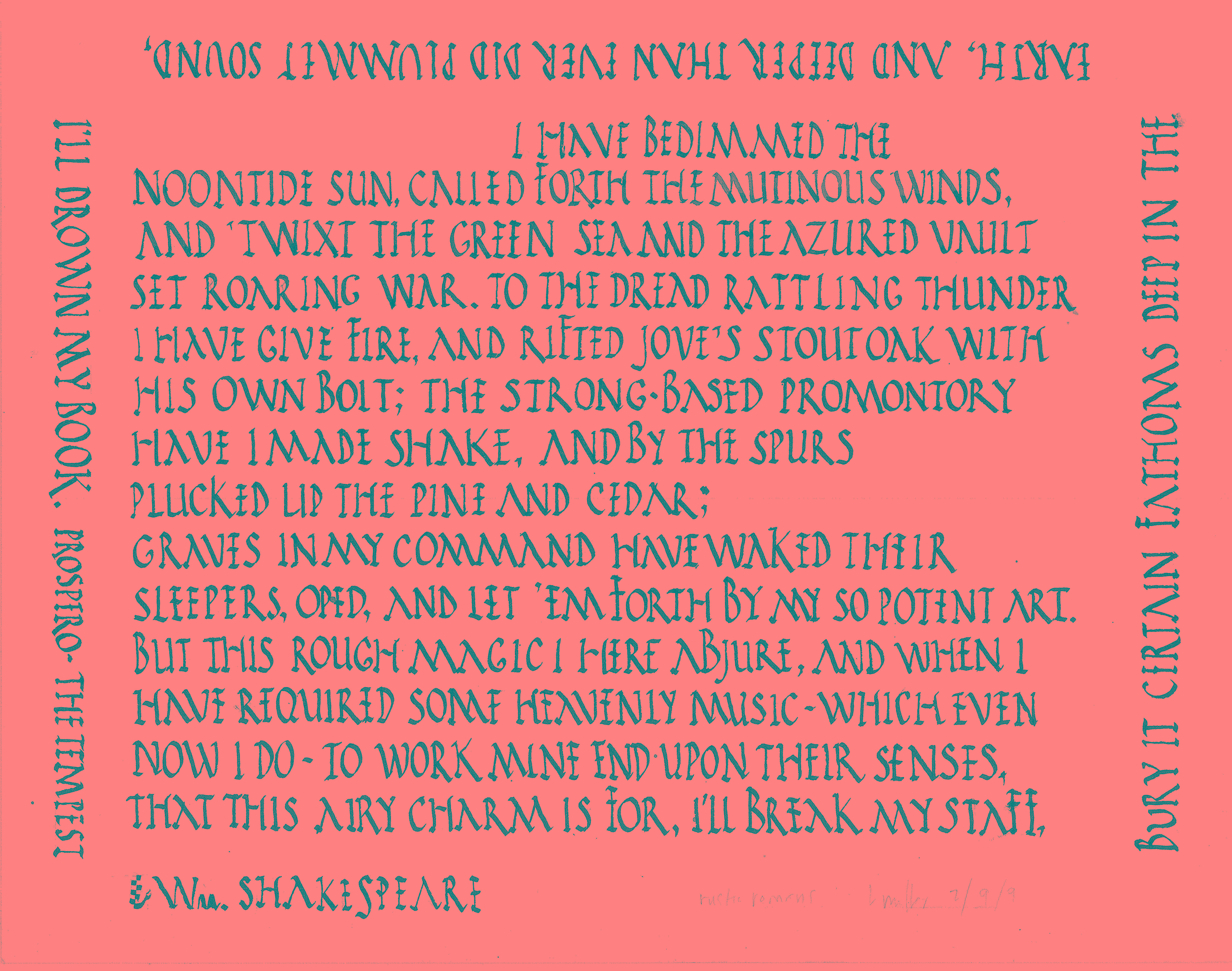 Prospero’s speech from The Tempest, Wm Shakespeare,