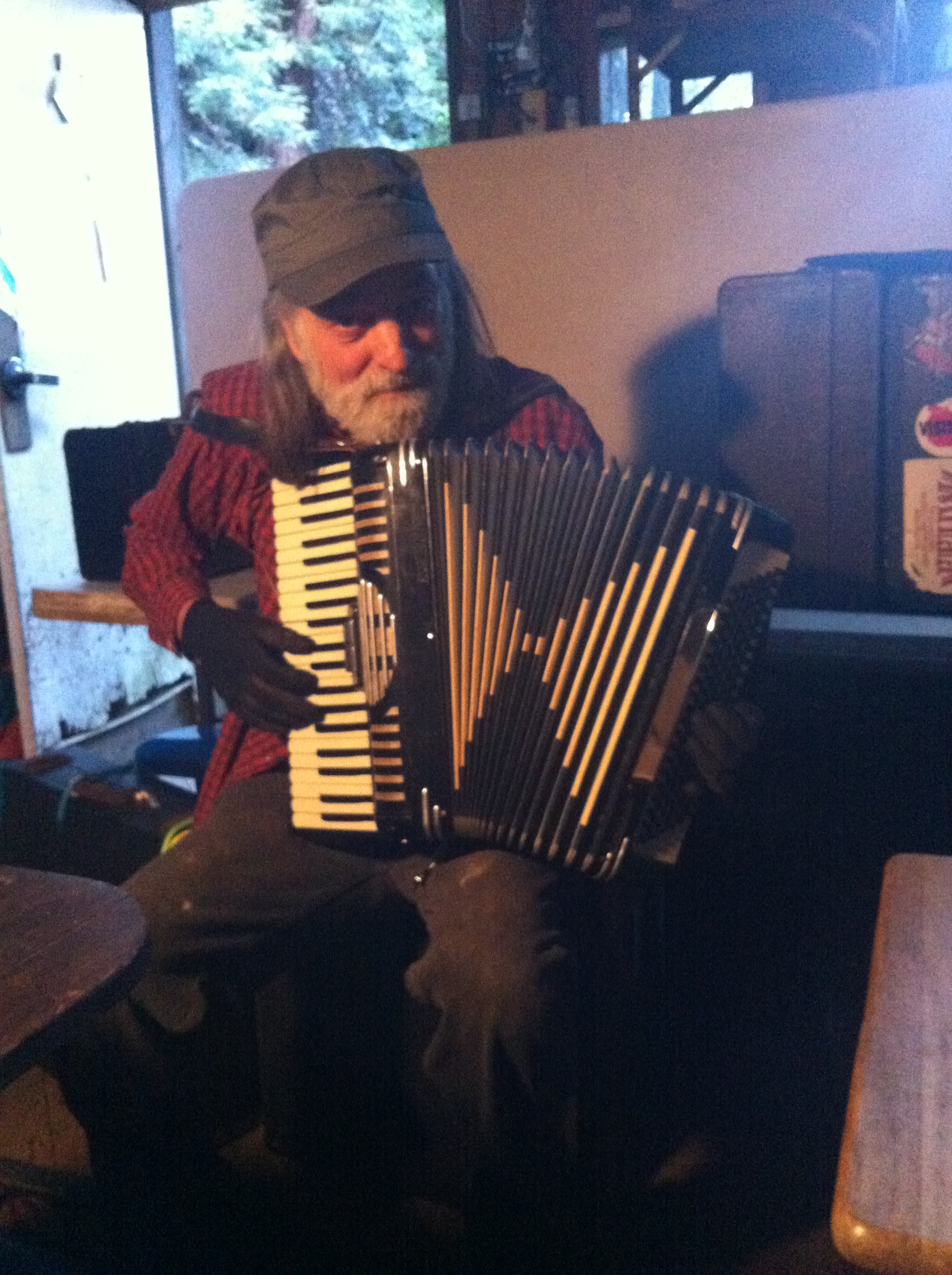 Working on the woodshed, building a new wood pile. Watering the two surviving apple trees. The remains of the big bay tree are in the parking area. So much work can get done on a Monday holiday when there is no mid-day gig in a far distant town.