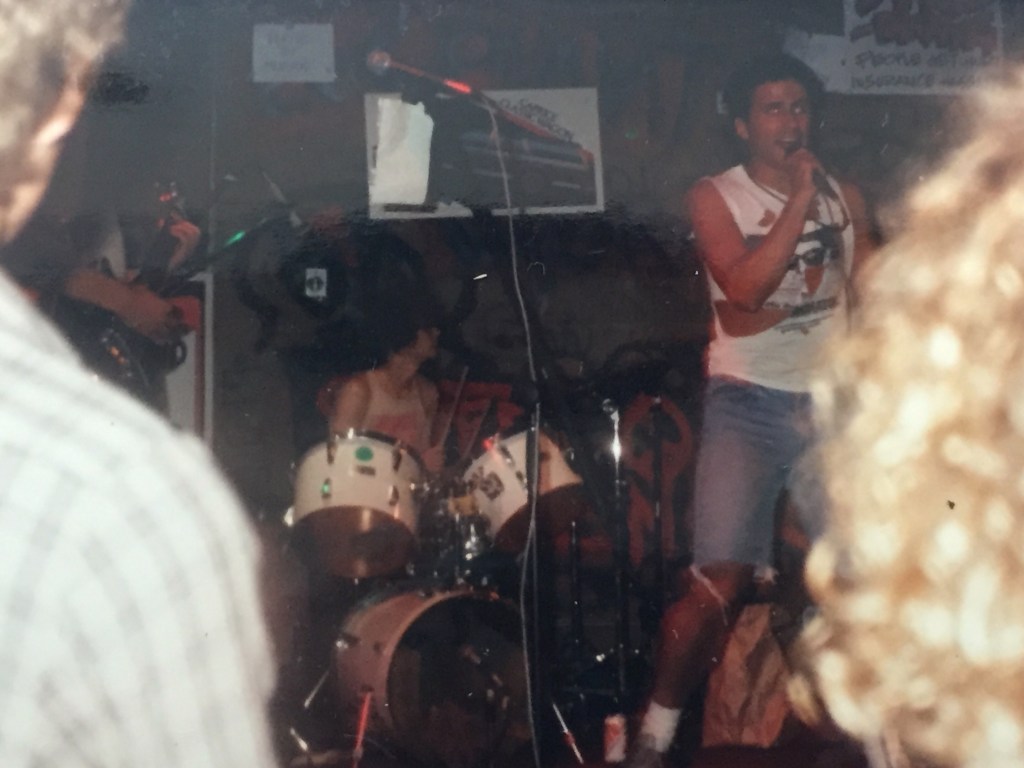 A couple of weeks ago I heard from Grif that he had found a VHS tape from our November 1990 performance on La Val’s downstairs stage–I forget what we called Down There. During two broken strings I shirked the opportunity to tell the very long story of how I worked at La Val’s from just after they opened in 1976 through early 1979; before I was playing music, when I was breaking up with Pilmer and hence nearly homeless, and via some strange interactions out in the street around a protest over the cancellation of Tim Yohannon’s show on KALX met up with the Frank Mooreons and thereby found myself playing drums at the Mabuhay Gardens weekly Thursday night dinner shows for four months with the Outrageous Beauty Review and the Superheroes . . Thus began my music and stage career.