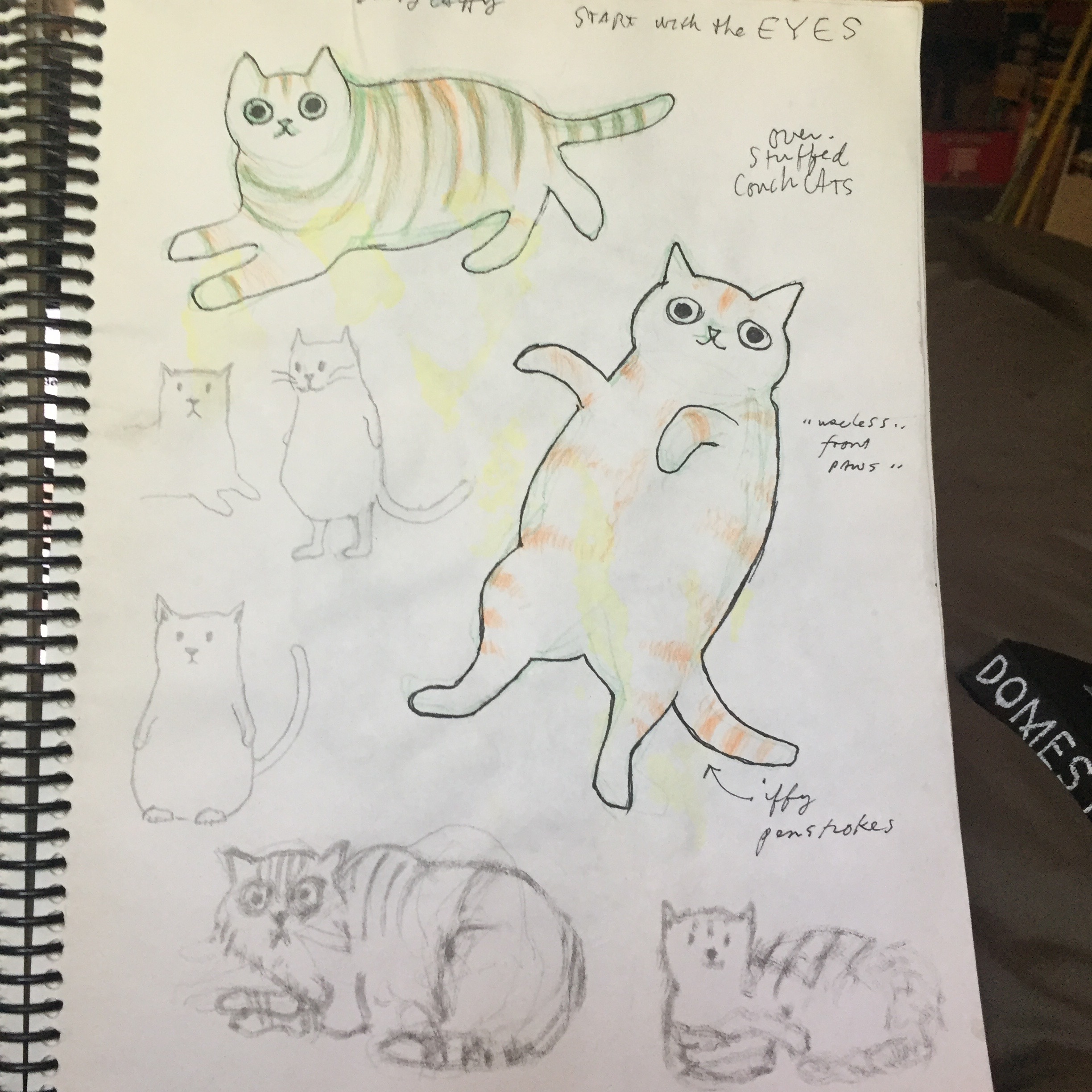 Here is a recent batch that came through. The standing cat was from a video of feral kittens being fed by a spoon to get them used to humans. I get a lot of ideas from videos or stills I find online. I am taking classes on Domestika, and screenshot pages from videos of my teachers’ sketchbooks.
