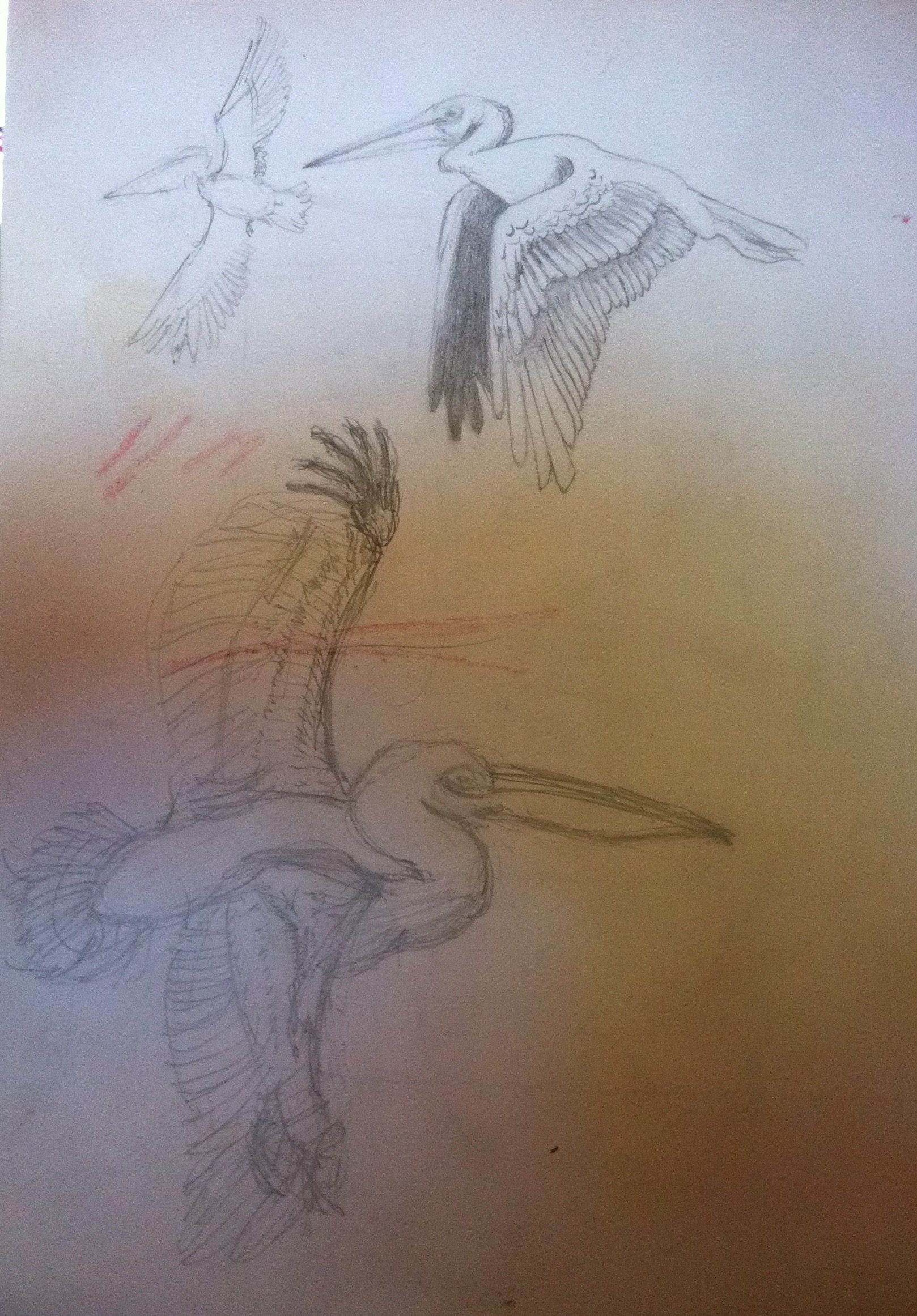 Here are ideas for a puppy crittur, some cats based on Kevin W. sketches, and two origami pterosaurs to use as models for a predatory character.