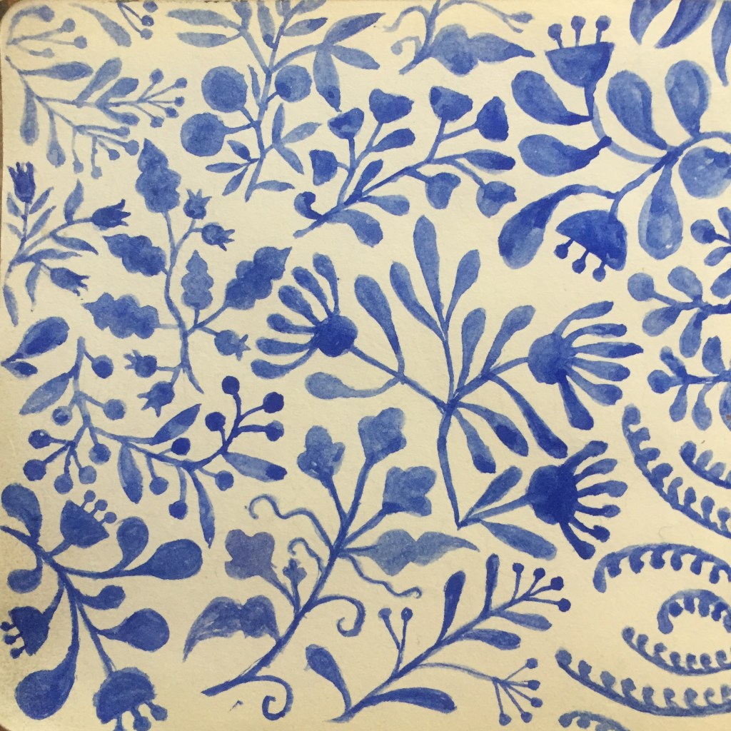 I love to copy these little designs, I love how the brush and watercolor makes little shapes and variations in tone in my sketchbook. Also fun and pointless, painting the patterns on a paper towel while sitting by the wood stove in late autumn.