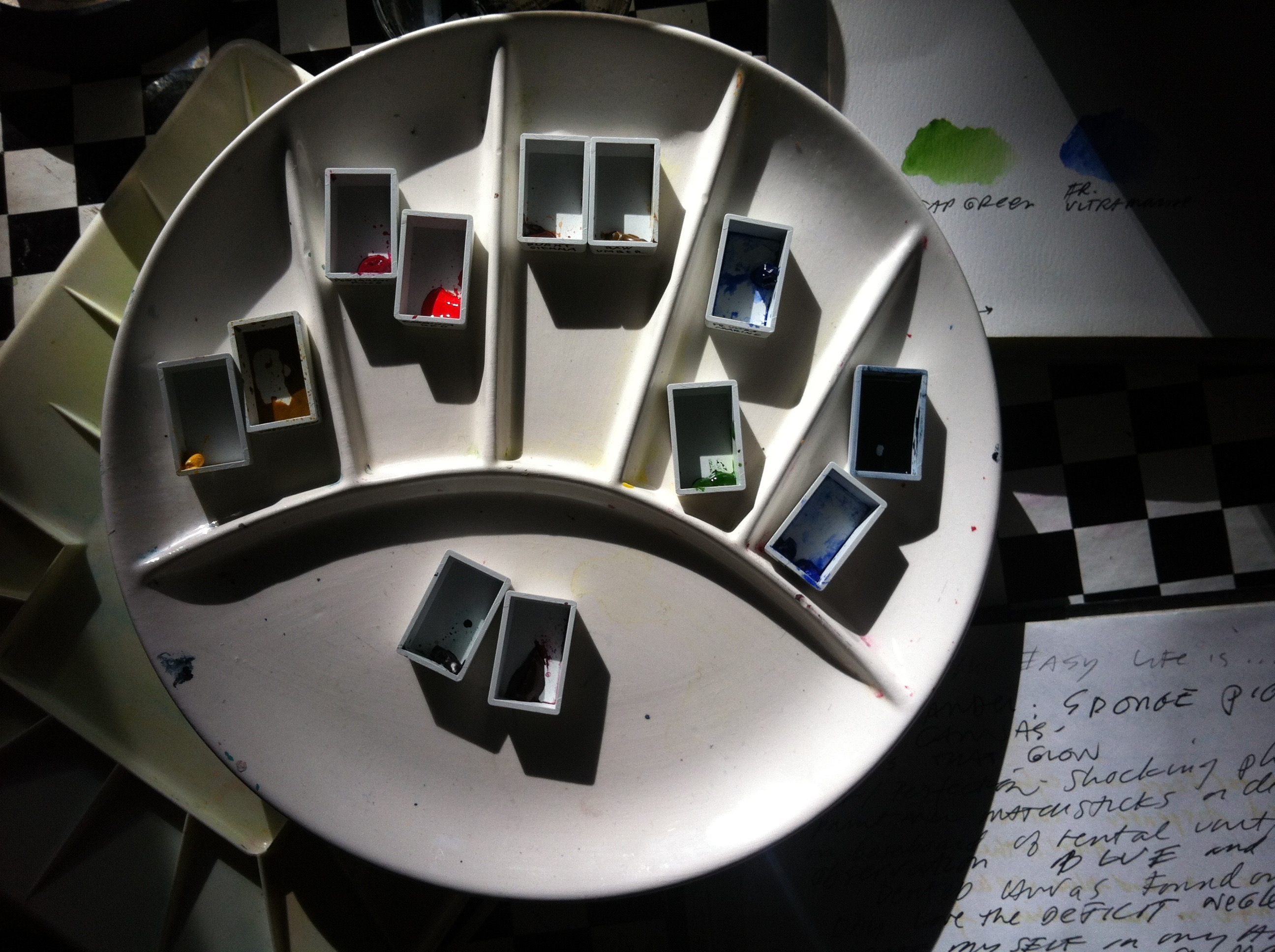 So, cleaning all brushes, palettes, rags, glass working surface with clean water.