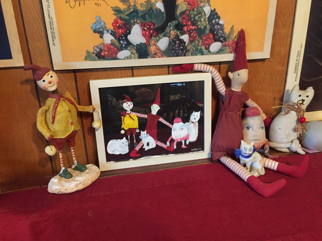 On the occasion of our second visit, I did a painting of Mimi’s toys as a thank-you gift. Very limited selection of paints, a fun challenge.