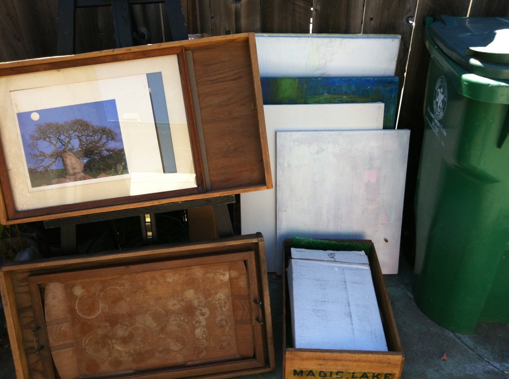 On July 17 I got notice to vacate my studio garage. It was such a shock, so unexpected, especially since I had just made headway cleaning up the mess after the dog-crap-and-snarling people had moved out, and able to get into the swollen-concrete-impeded door for the first time since late January.