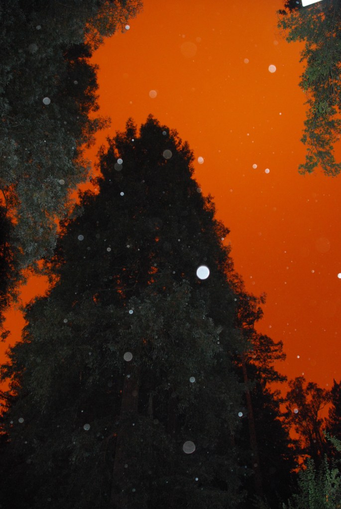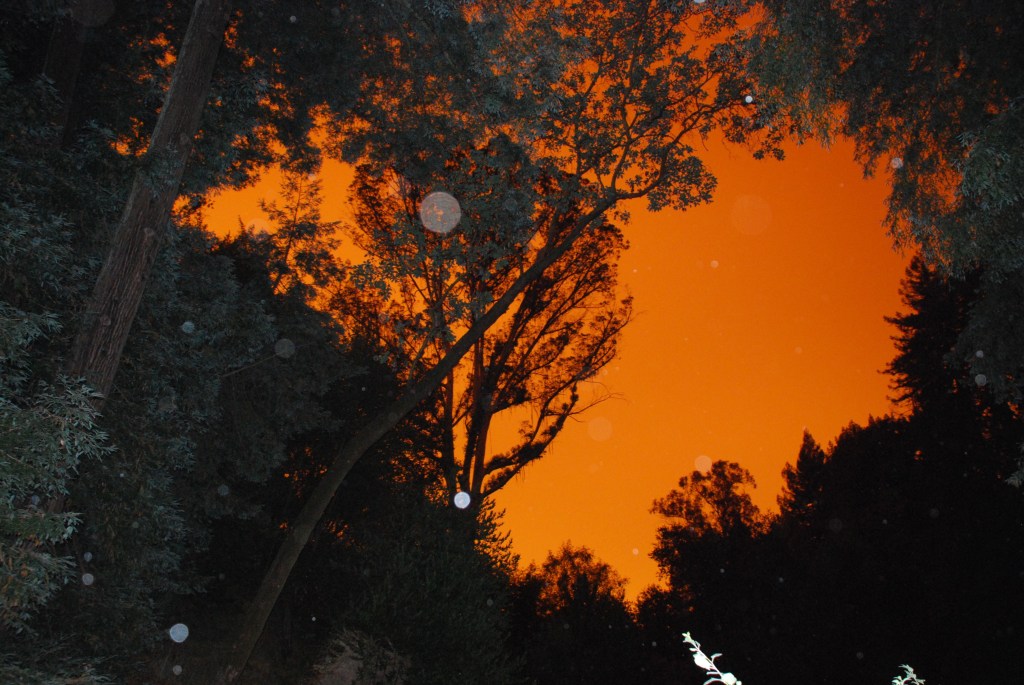 California is aflame- we went camping but had to head north because Yosemite was booked and the forests were being evacuated. After a smoky and daunting Monday and night at 9600+ feet- -Pacific Coast Trailhead parking at Sonora Pass- -we came home Tuesday, to awake Wednesday September 9 to Mars Stationing in Aries, and a red-orange sky that lasted all day.