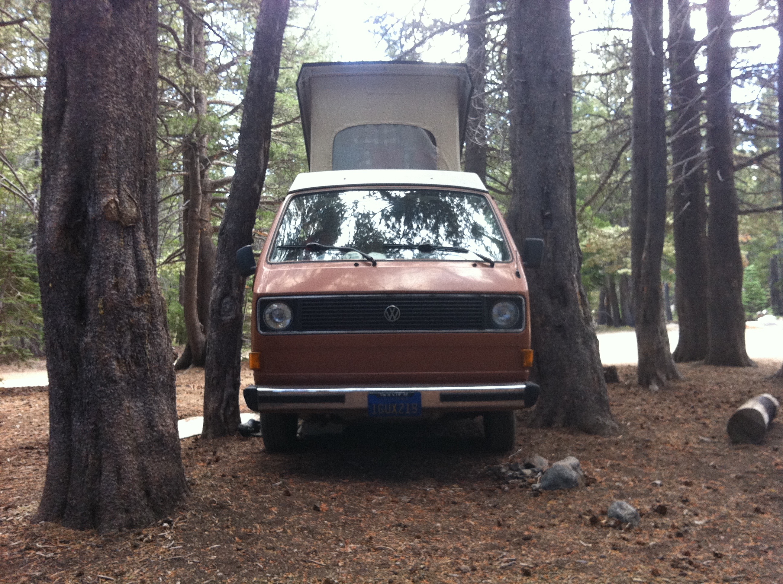 We also had an adventure when Art drove the Westy into a gutter, and a feller came over to share his extensive expertise which resulted in spinning one of my tires bald on slippery granite river rocks before we finally got the van dislodged and parked .